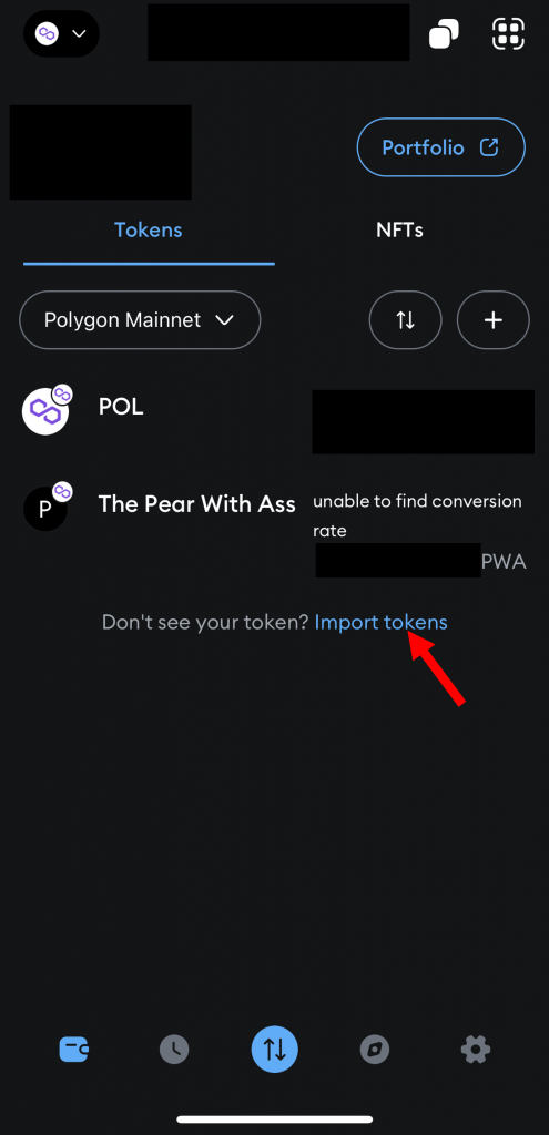 Nella schermata principale di metamask vedrai in fondo le tue $PWA